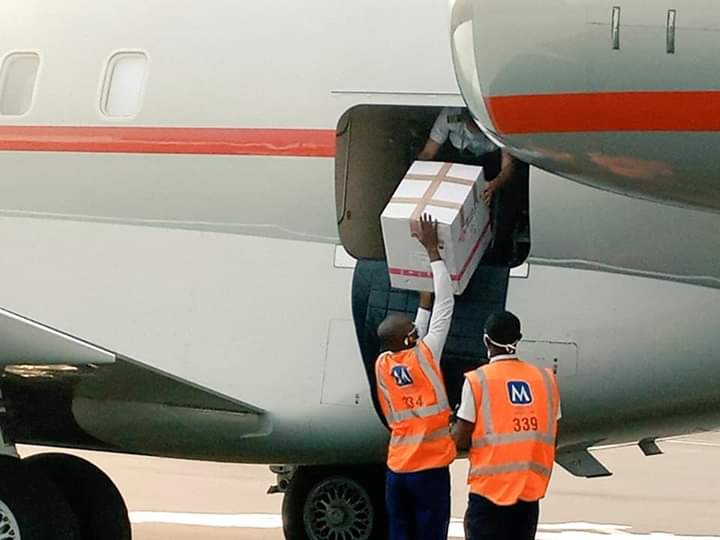 Le ministre de la Santé, Benjamin HOUNKPATIN et le ministre de l’Economie et des Finances, Romuald WADAGNI ont réceptionné ce samedi 25 avril 2020 à l’aéroport de Cotonou un lot important de tests dans le cadre de la lutte efficace contre le COVID-19 au Bénin.